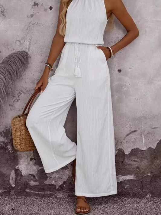 Tassel Sleeveless Wide Leg Jumpsuit Plus Size