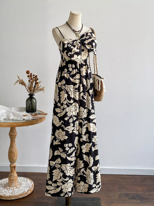 Floral Print Bowknot Wide Leg Jumpsuit