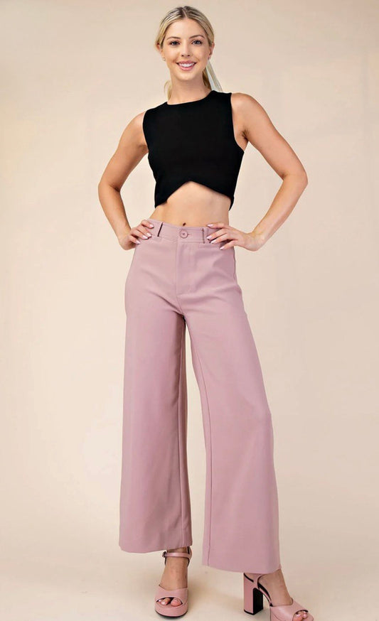 CLEMENTINE Ribbed Knit Wide-Leg Pants