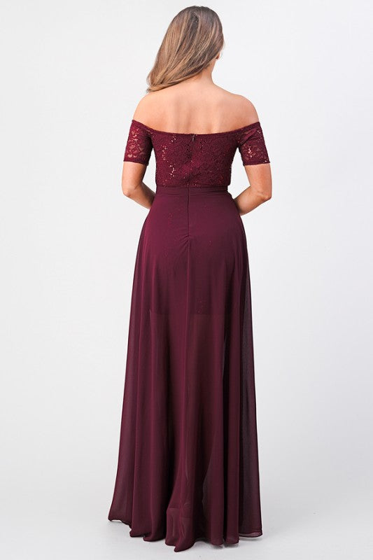 Sequin V-Neck Lantern Sleeve Maxi Dress