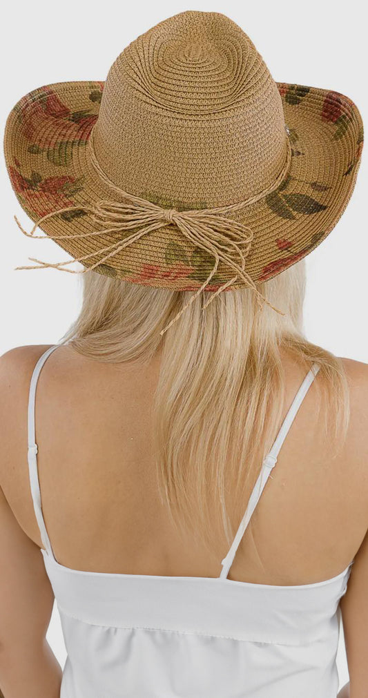 Gardenia Abstract Floral Ribbon Floppy Hat