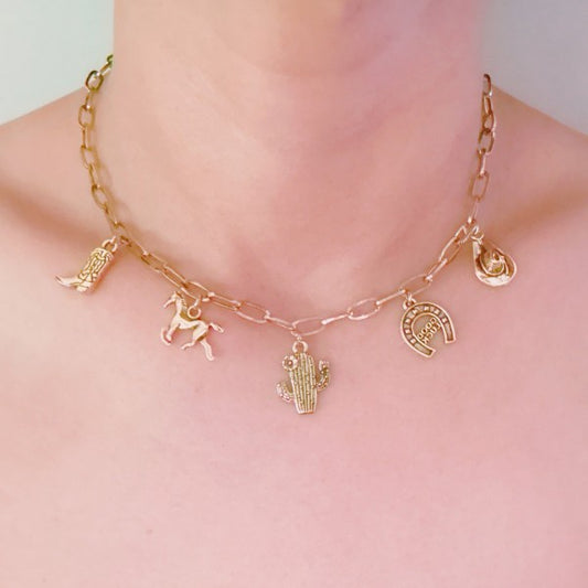 Cowgirl Charm Necklace – Cactus, Horseshoe