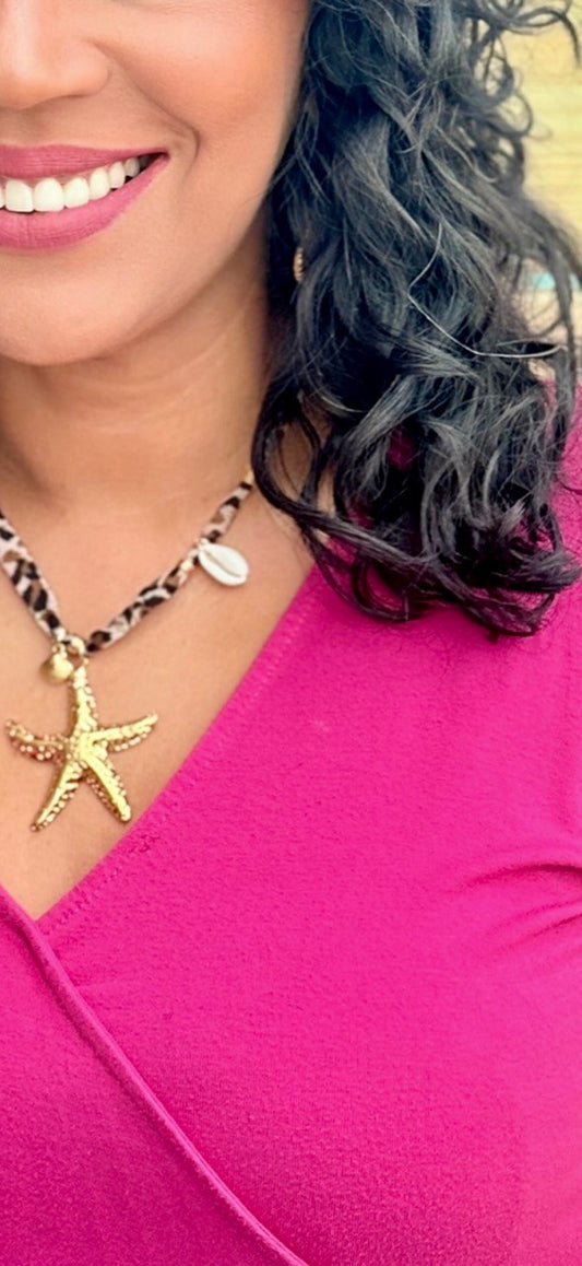 Leopard Print Rope Starfish Pendant.