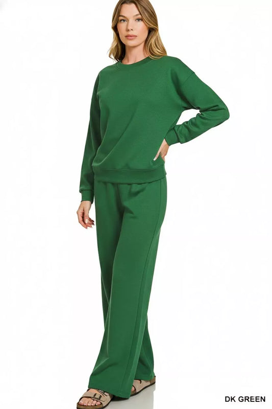 Drop Shoulder Puff Sleeve Crop Top and Drawstring Wide Leg Pants Set