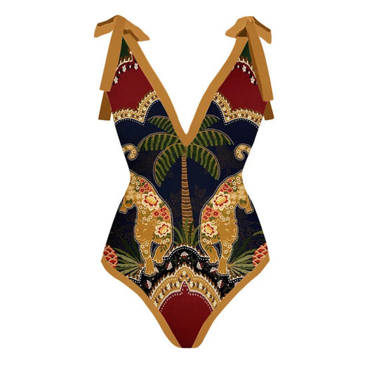 WAVE PRINTED ONE SHOULDER ONE PIECE SWIMSUIT