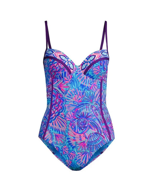 Davi & Dani Solid Crochet Mesh Detail One Piece Swimsuit
