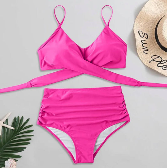 Solid Ruffle Sleeve Tie Front One Piece Swimsuit