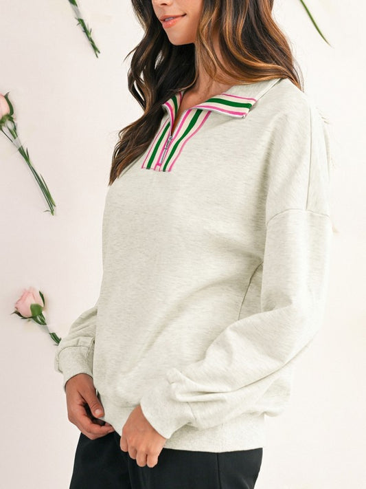 Cotton Stripe Collar Patchwork Pullover Sweatshirt