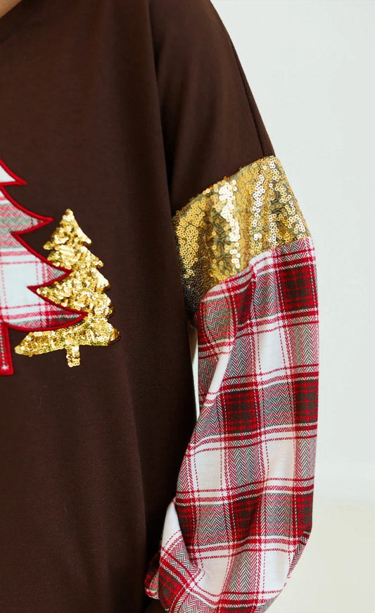 BROWN PLAID CHRISTMAS TREE SWEATSHIRT